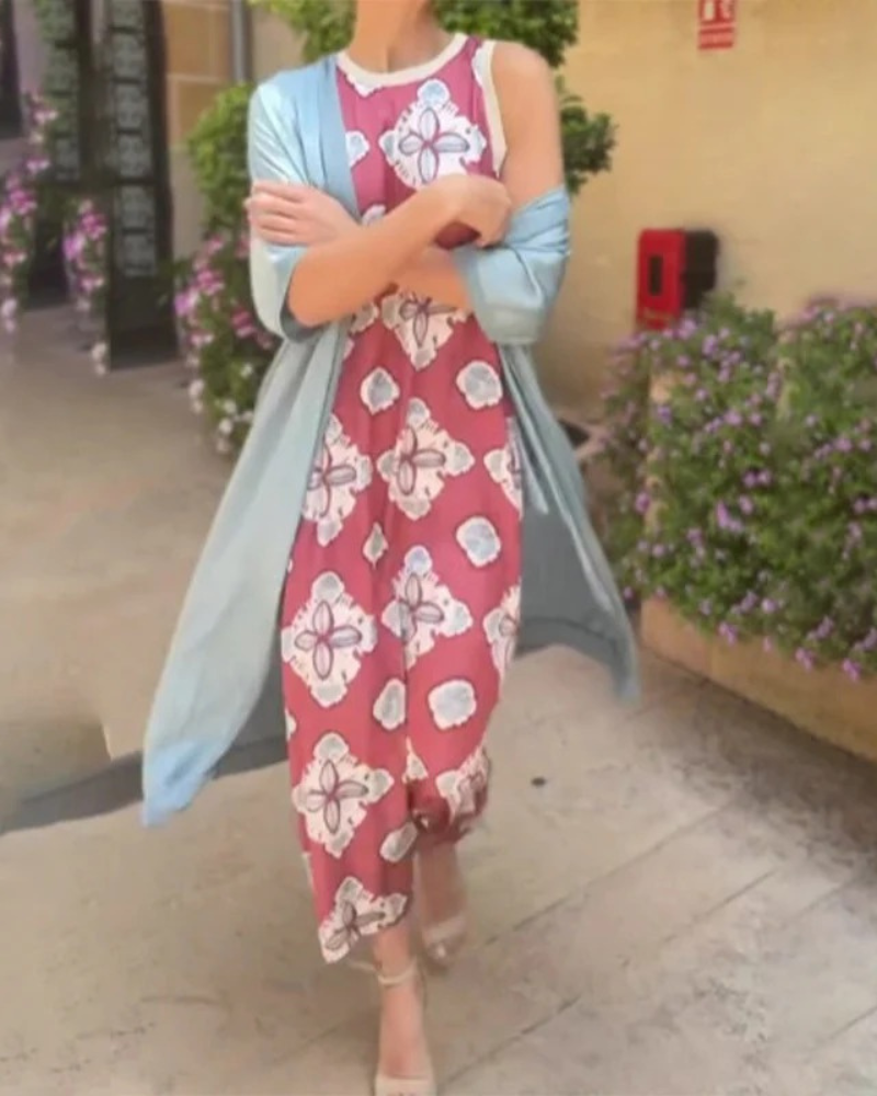 - Comes with a long, solid-colored duster that perfectly complements the dress, offering versatile layering and coverage.