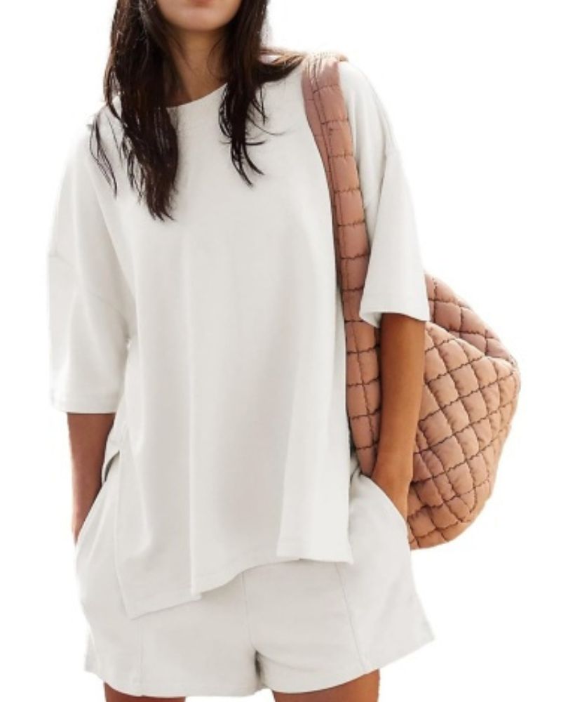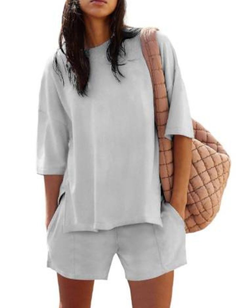 Designed for ultimate comfort, this relaxed-fit short-sleeve top and matching shorts make the perfect duo for lounging at home or running errands in style.