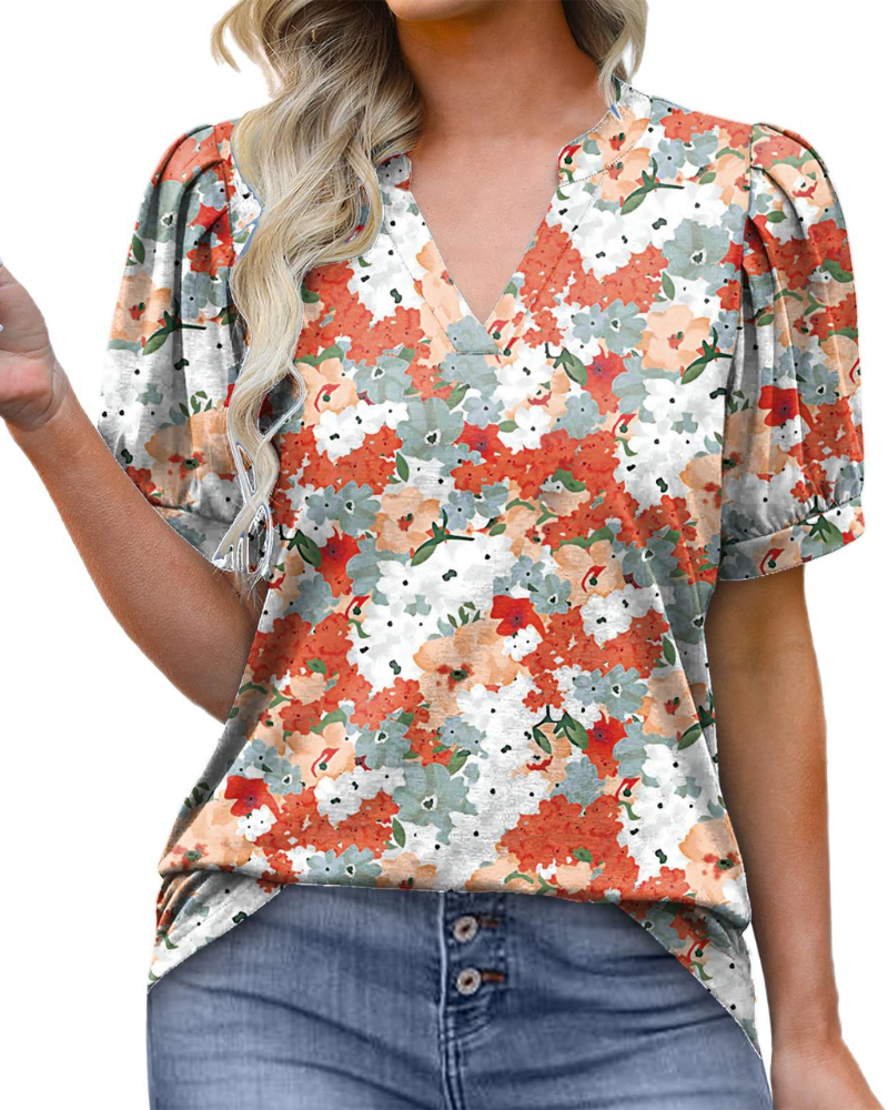 The V-notch neckline and gently puffed sleeves add a touch of sophistication, while the soft, flowy fabric ensures all-day comfort.
