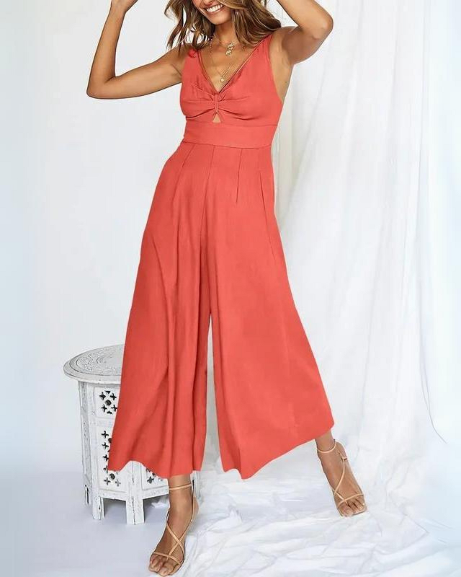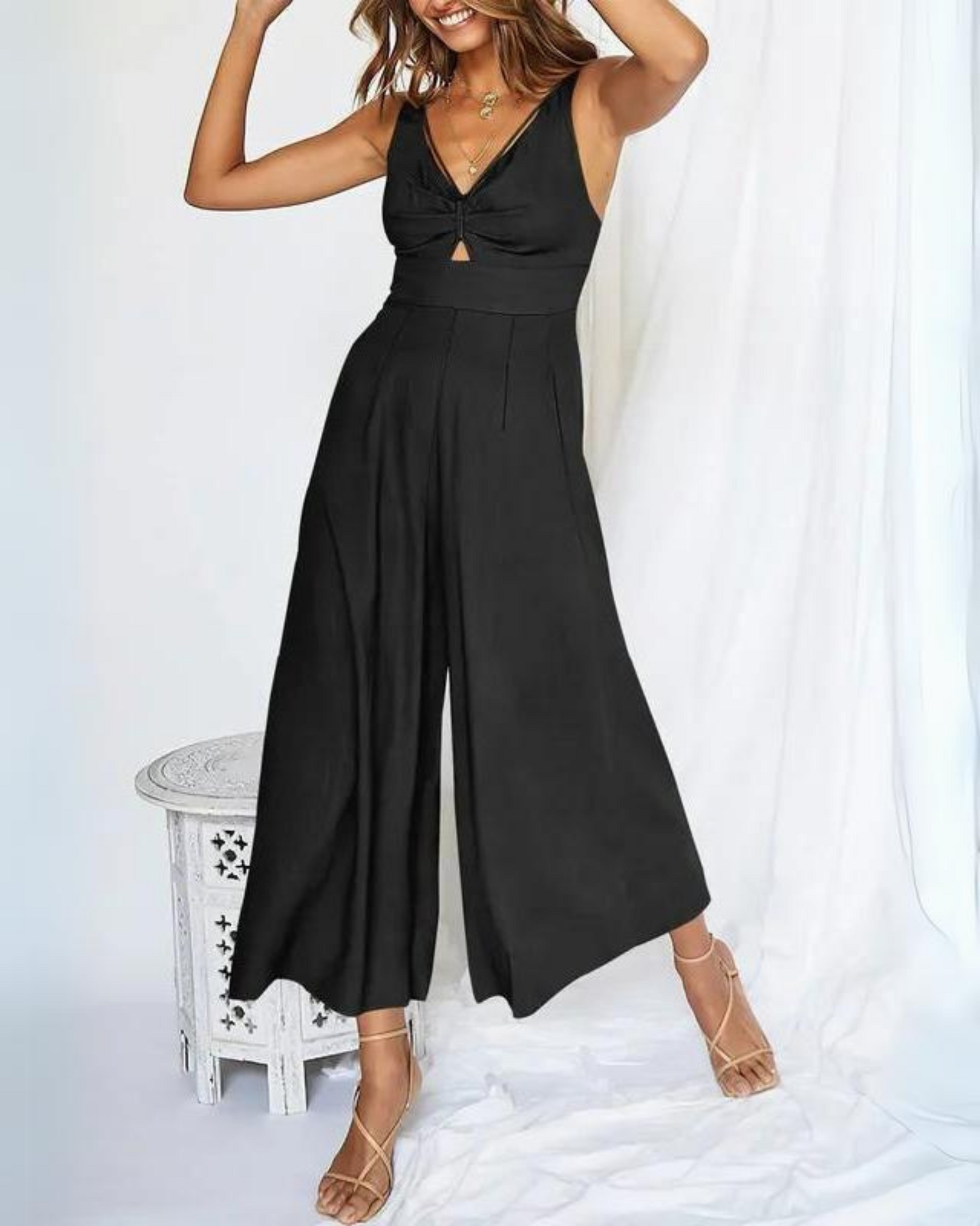 These casual jumpsuits are designed with thick adjustable straps. The v-neckline, cutout front, and backless design are perfect for autumn days.